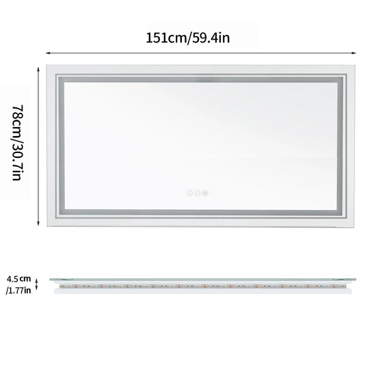 Jumbo-Large Illuminated LED Bathroom Mirror, Front and Backlit Lights, Wall Mounted, Touch Anti-fog Vanity Mirror