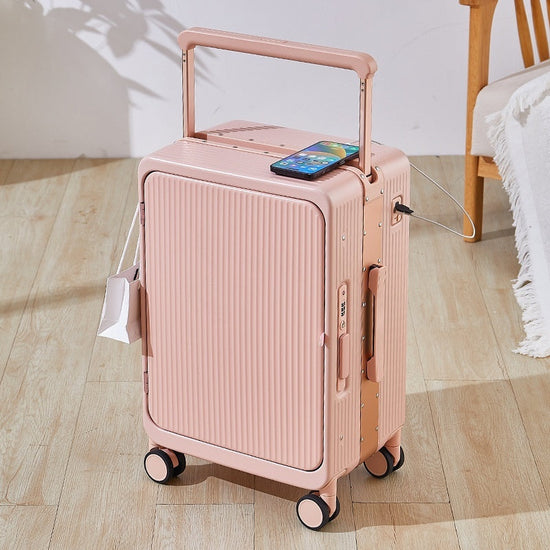 Multifunctional USB Charging Trolley Case Front Fastening Wide Trolley Universal Wheel 20-inch Boarding