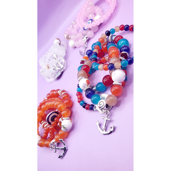 Add a pop of colour and shine to your style with this glass beaded bracelet. Featuring smooth, vibrant glass beads and charming accents, it’s perfect for stacking or wearing solo. Comfortable, eye-catching, and easy to mix and match—this bracelet is a must-have for every accessory lover.