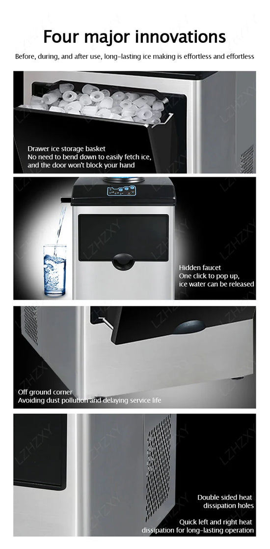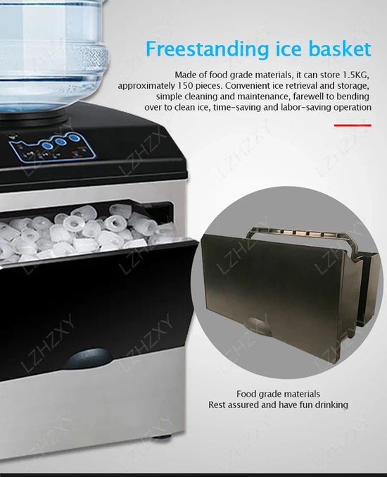 Commercial Ice Machine 25KG Desktop Multifunctional Bucket of Water Automatic Ice Machine Bullet-shaped Round Ice Home Appliance