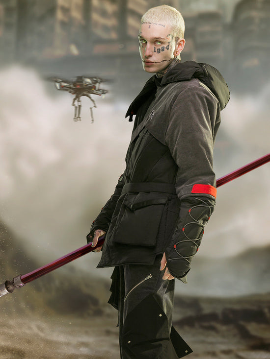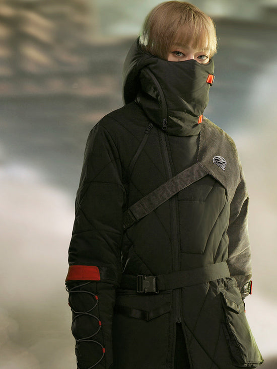 Mid-length Black Hooded Cotton Coat
