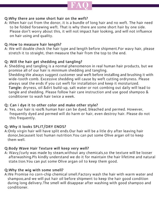 Hair Quality: 100% human hair with high quality, no shedding and tangle. Can be colored, curled and straighten.